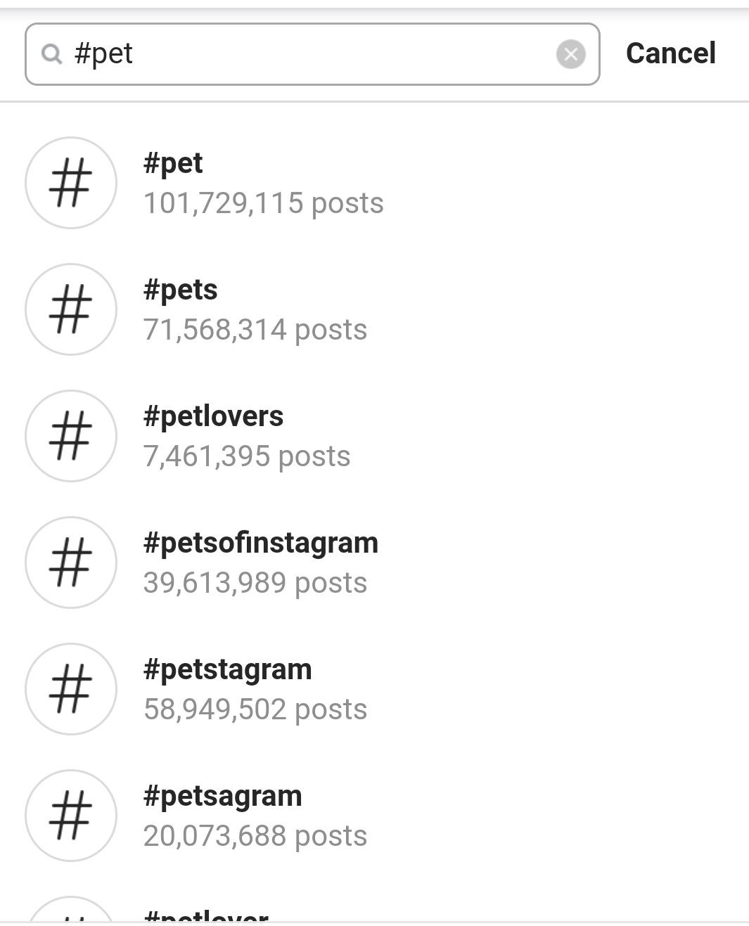 As you enter a hashtag, you’ll see a list of recommended hashtags by Instagram that match your keyword’s first few letters.