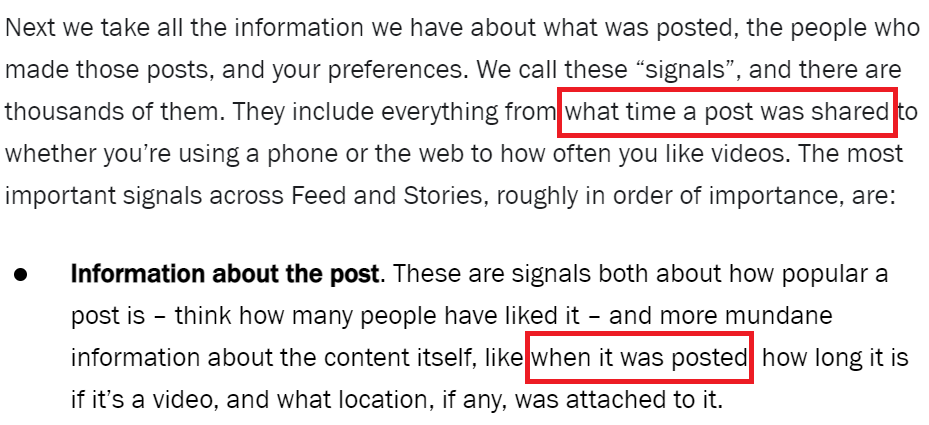 Here’s what Instagram Head Adam Mosseri said about publishing time being one of the signals to rank Feed and Stories: