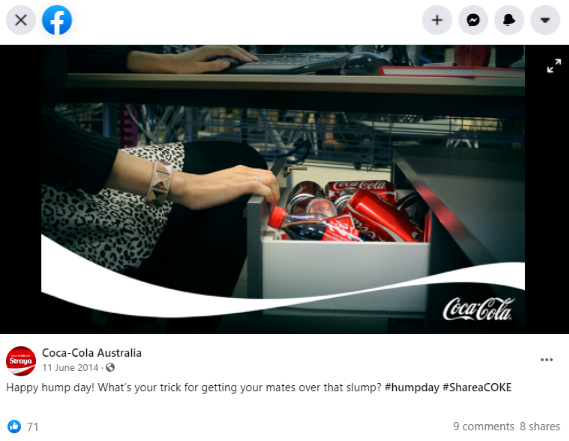 Taking cues from Coca-Cola, you can also start a conversation with your audience around a topic and encourage them to join you by using branded and campaign hashtags on Facebook.