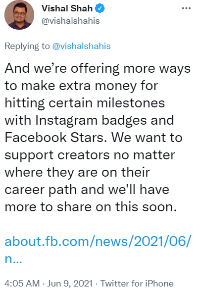 Taking note of this trend, Instagram issued a statement in June 2021 saying it always wanted to give the creators more room to grow and earn.