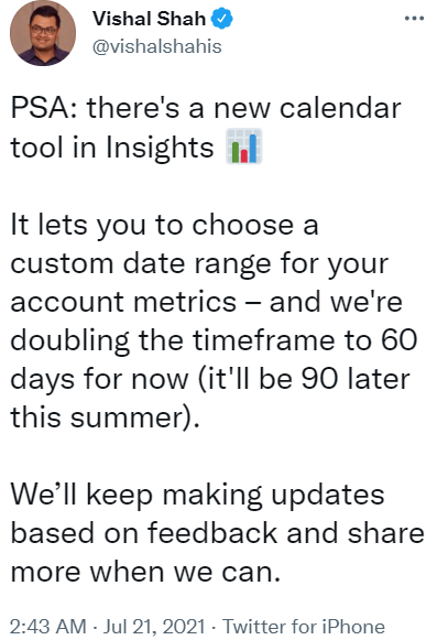You can access this in Insights where you choose how you want the data shown. The tool lets you add filters and set a custom date range, which is currently 60 days and will soon be expanded to 90 days.