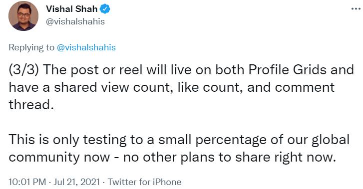 The benefit is that both accounts will enjoy shared views and like count, including comment threads.
