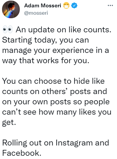 You can find Instagram's May 26, 2021 announcement here.
