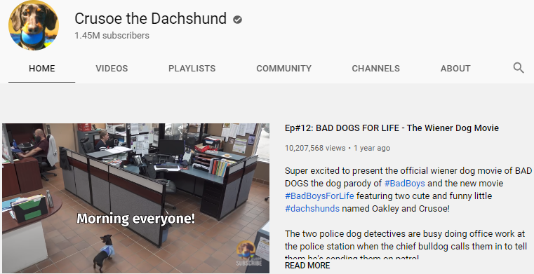 3. YouTube allows up to 15 hashtags in video descriptions. Take a look at this description from Crusoe the Dachshund’s video. Not only is it in-depth, but it also includes hashtags.