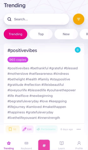 Our community members can use the in-app features to track hashtag performance and make a personalized list for their posts.