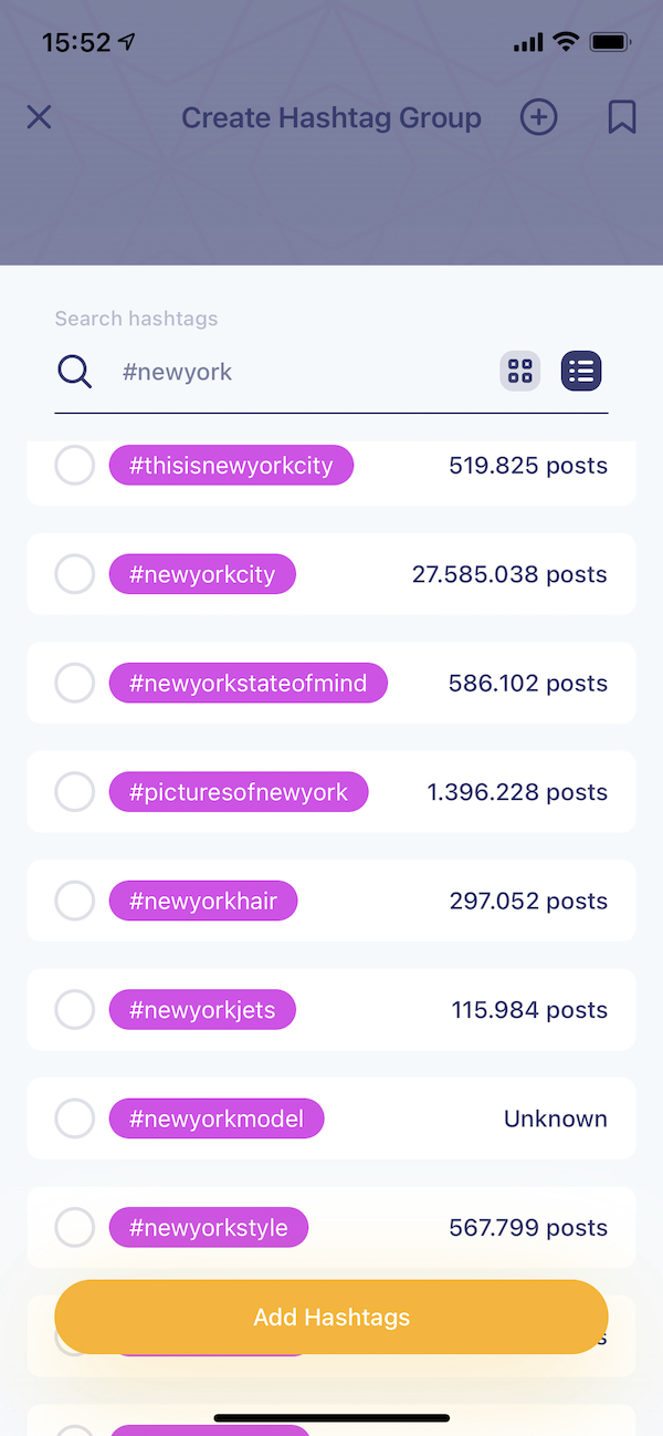 - When you’ve selected the hashtags, tap ‘Add x Hashtags’ at the bottom