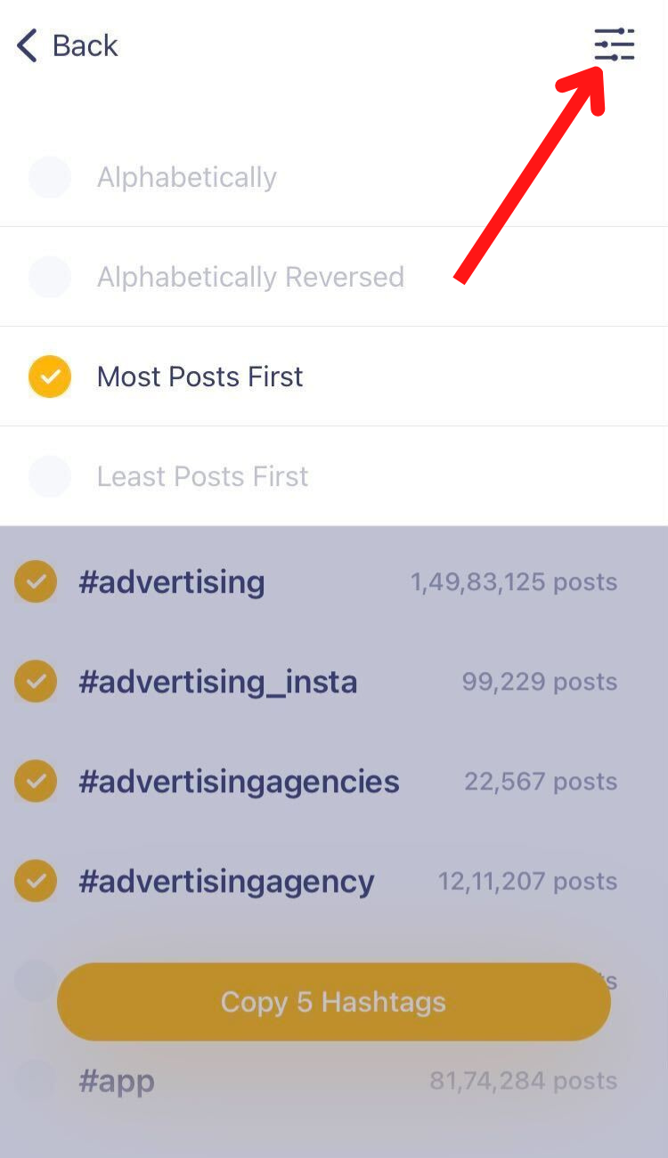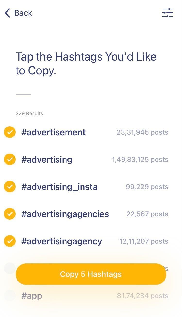 Tap the button and in the next screen, you’ll can choose hashtags from the list. Next, copy the selected hashtags.
