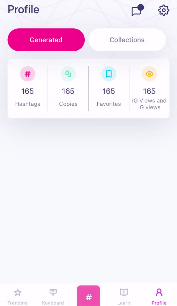 This tab features all hashtag groups you have saved (regardless of if it is in a collection or not) and the groups are sorted by most recently copied.