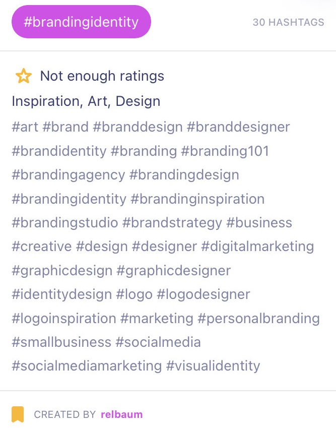 The top card just describes the group and some basic information about it. We have the hashtags themselves, the base hashtag that the group came from, who created it, and the categories it belongs to.