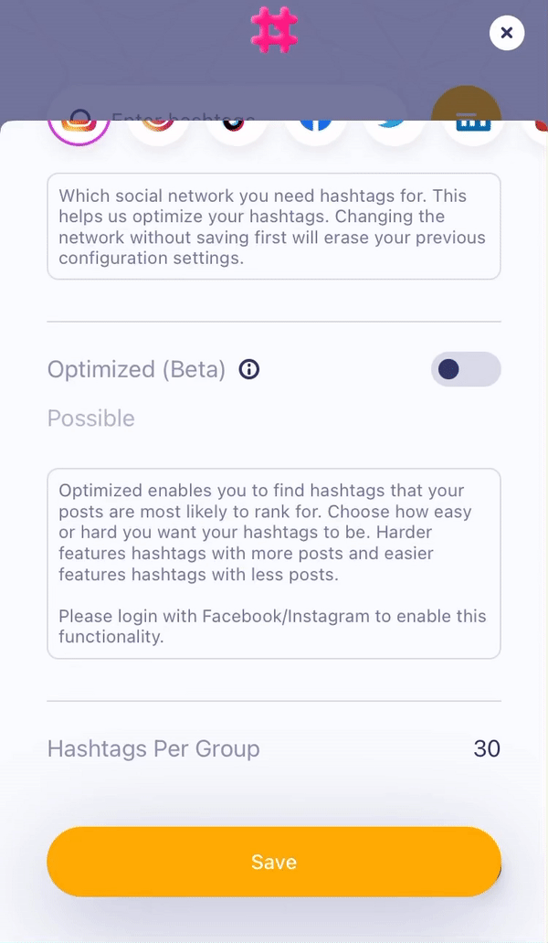 You can choose from the following options and set how you want the hashtags generated: